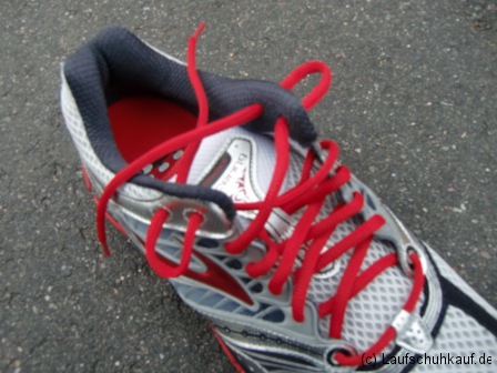 In Bezug auf die Schnürung hat auch die Machart der Schnürsenkel ihren Einfluss auf dfie Passform. Runde Schnürsenkel lassen sich zwar schneller und besser zuziehen, gehen aber leichter wieder auf als flache, breite Schnürsenkel, wenn diese richtig fixiert sind. Mit Hilfe eines Doppelknoten kann ein Aufgehen der Schuhe sicher verhindert werden. Vor Wettkämpfen empfehle ich die Schnürung nach dem Warmlaufen kurz vor dem Start nochmals nachzuziehen und dabei besondere Aufmerksamkeit der Festigkeit des Knoten zu schenken.