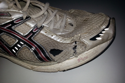 Abnutzungserscheinungen am Laufschuh