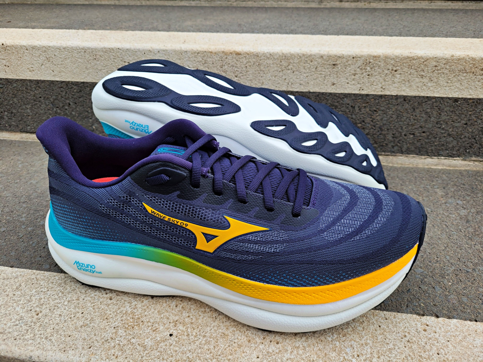 Wie auch beim Wave Rider 29 hat auch das Flaggschiff der Mizuno Float Kategorie, der Wave Sky 9, direkt nach einem Jahr wieder ein Komplettupdate bekommen. Vermutlich war die Begeisterung über den hauseigenen Stickstoff injizierten Enerzy Nxt Schaum einfach zu groß, so dass dieser auch im Wave Sky verbaut werden musste. Etwas überraschend, weil in den Jahren zuvor beim Wave Sky eher wenig passierte bzw. die Veränderungen eher klein waren.