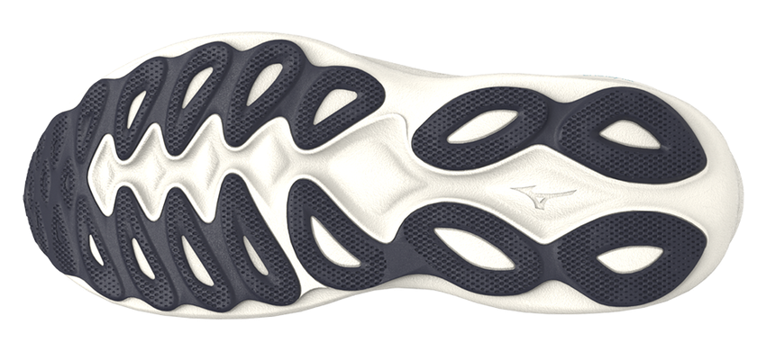 - Zwischensohle: 2-lagige Zwischensohle mit durchgehender Foam-Wave (Schaum-Welle), unterste Schicht (direkt oberhalb der Außensohle) aus Mizuno Enerzy Nxt (EVA Basis), Deckschicht aus Mizuno Enerzy NXT (Nitrogen infused) Schaum